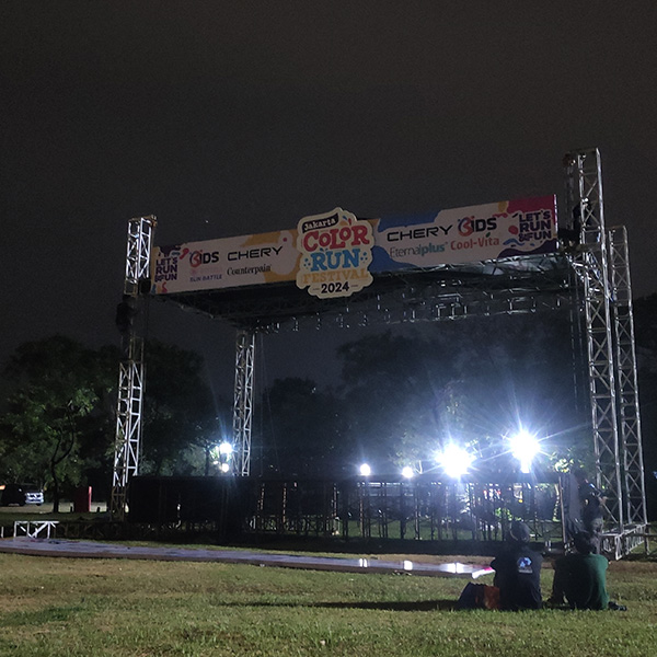 Panggung, rigging, sound, lighting, kursi, meja, dan barrier.