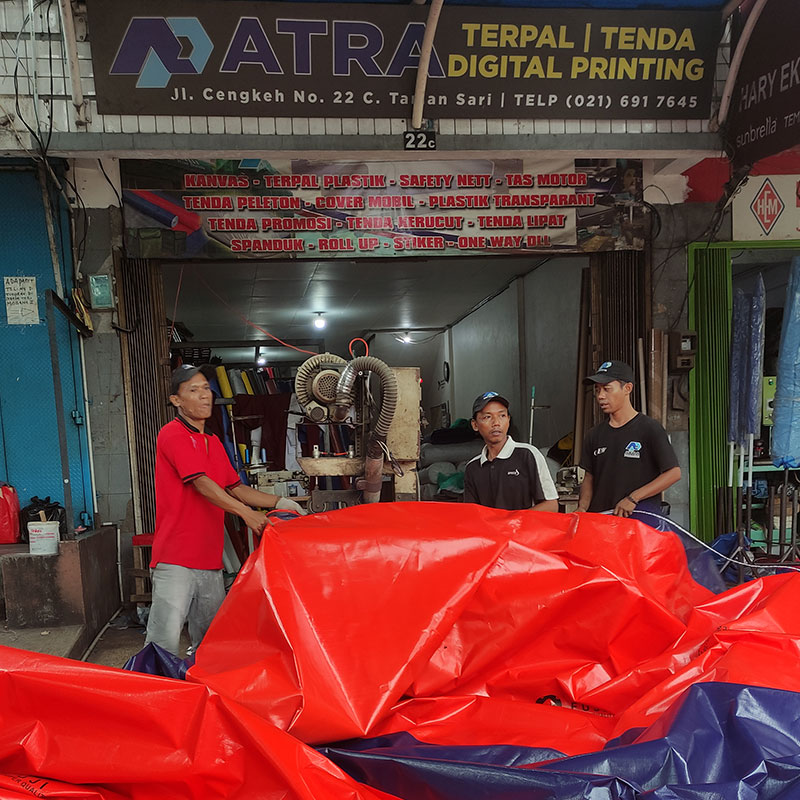 Terpal kami dirancang untuk ketahanan, keamanan, dan penggunaan profesional, cocok untuk kebutuhan acara, industri, maupun proyek lapangan. PVC & kanvas standar industri, kuat menghadapi cuaca. Custom ukuran & model untuk acara atau kebutuhan industri. Sewa maupun produksi, siap pakai tanpa repot. Tim berpengalaman, setup cepat & rapi di lokasi.